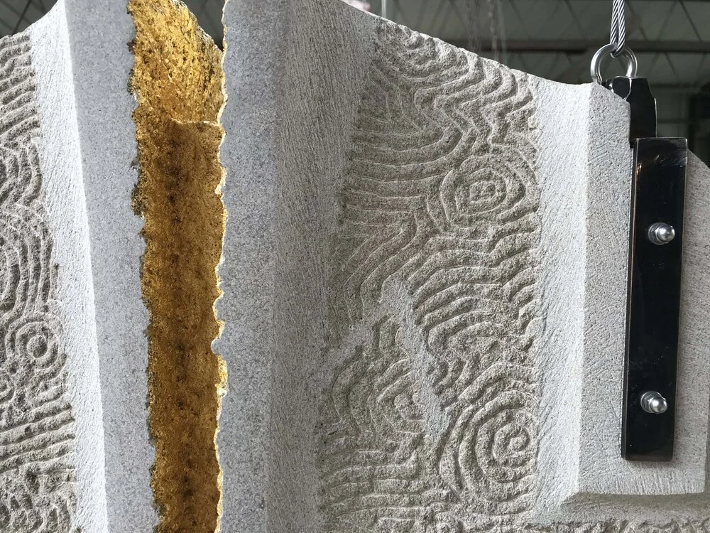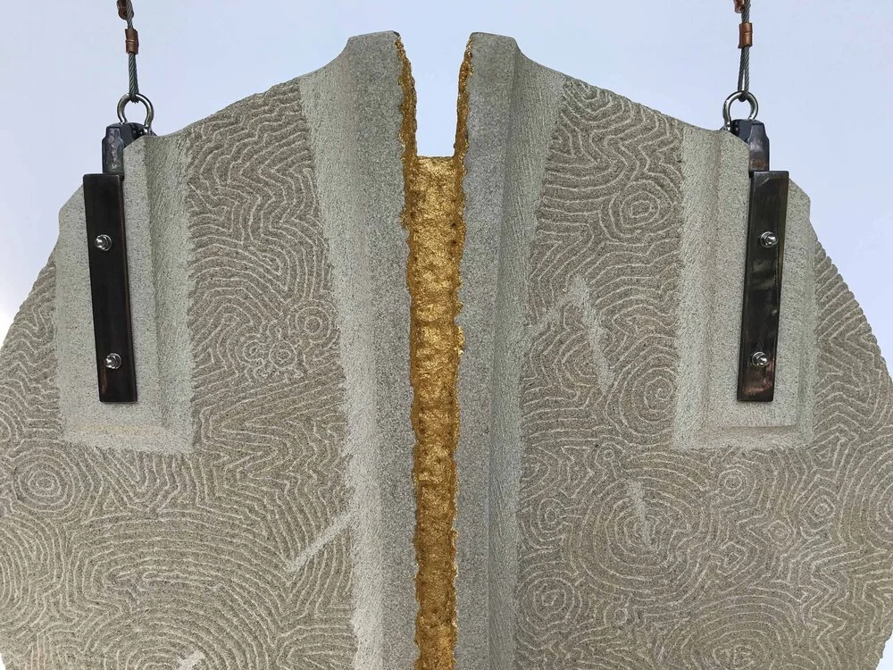 Medium: Limestone, gold leaf, powder coated steel, stainless steel, and bronze