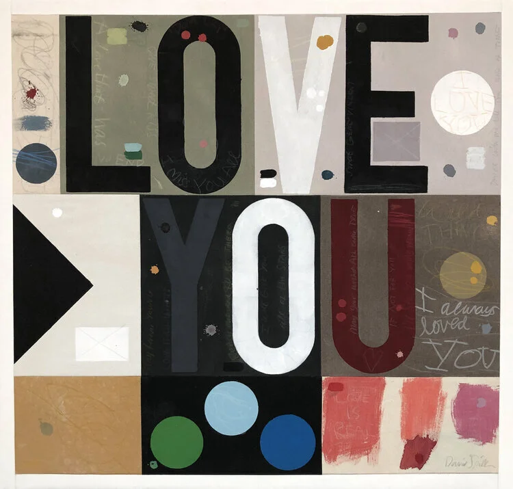 “I think it is desperation a lot of the time in my work… What the hell do you do? You work like a child with a tower of bricks, building this thing, and there comes a point when you want to push it over. I make the wall and then scribble on it... At this point in my life I feel I’m trying to get the important message down… Cut to the chase… It’s about four alphabet letters… LOVE… That mean so much… expressed… In songs… In poems… In art… It’s like I’m leaving a note, a prayer, a poem in the Western Wall in Jerusalem…”