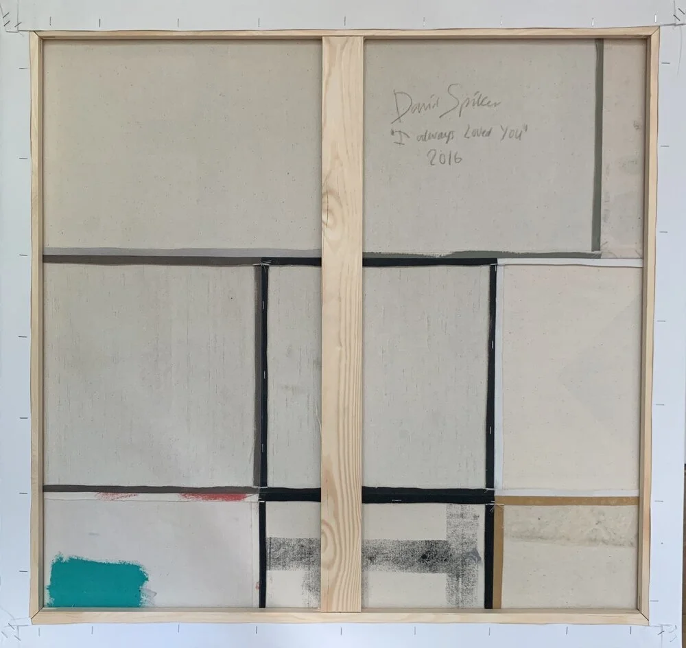 David laboriously assembled swatches of canvas, almost “neurosurgically” sewing painted panels together, beautifully constructed, precise, hard-edge color abstract works that were painstakingly stenciled with lyrics from a favorite song. This unique way of assembling a painting (not obvious at first sight) gave him the freedom to remove or add panels, to obtain the “right” balance. He loved the precision and possibilities this process offered, explaining that a line could not be painted so sharply; he took pride in their labor of love assembly, a magical process of what appears at first glance to be a seemingly effortless job.