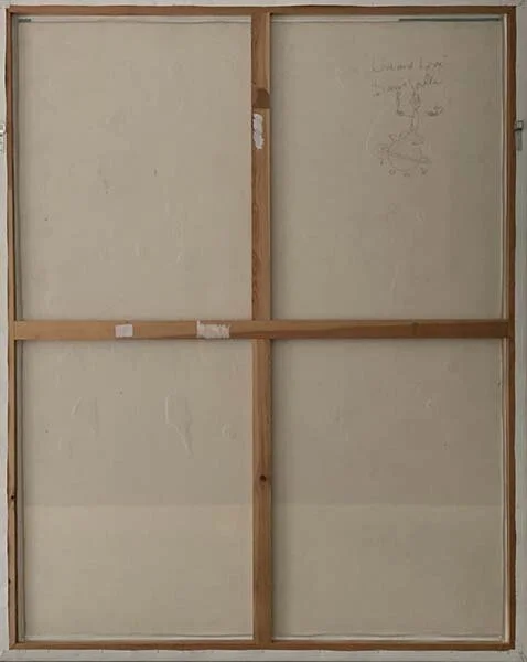 He chose to paint the symbol on a really large scale to reaffirm his utopian hope – he emphasized this with the word PEACE underneath, stenciled in a bold black hard-hitting typeface. Once he’d grabbed your attention, David counterbalanced the size and impact of this painting by using tiny inscriptions – near-microscopic hand-writing, enticing the viewer to step closer and discover another layer. You’re invited to to read his messages of love and important proclamations: ‘Love is all there is’… ‘It’s just a moment, the time will pass’. It’s not uncommon to find the inclusion of an identifiable regular character in David’s entourage: a portrait of his mother holding her legendary four-leaf clover. The more closely you look into the painting, the more you see a window into David’s soul - his emotions laid bare, fears and worries, wishing for love and peace for all.
