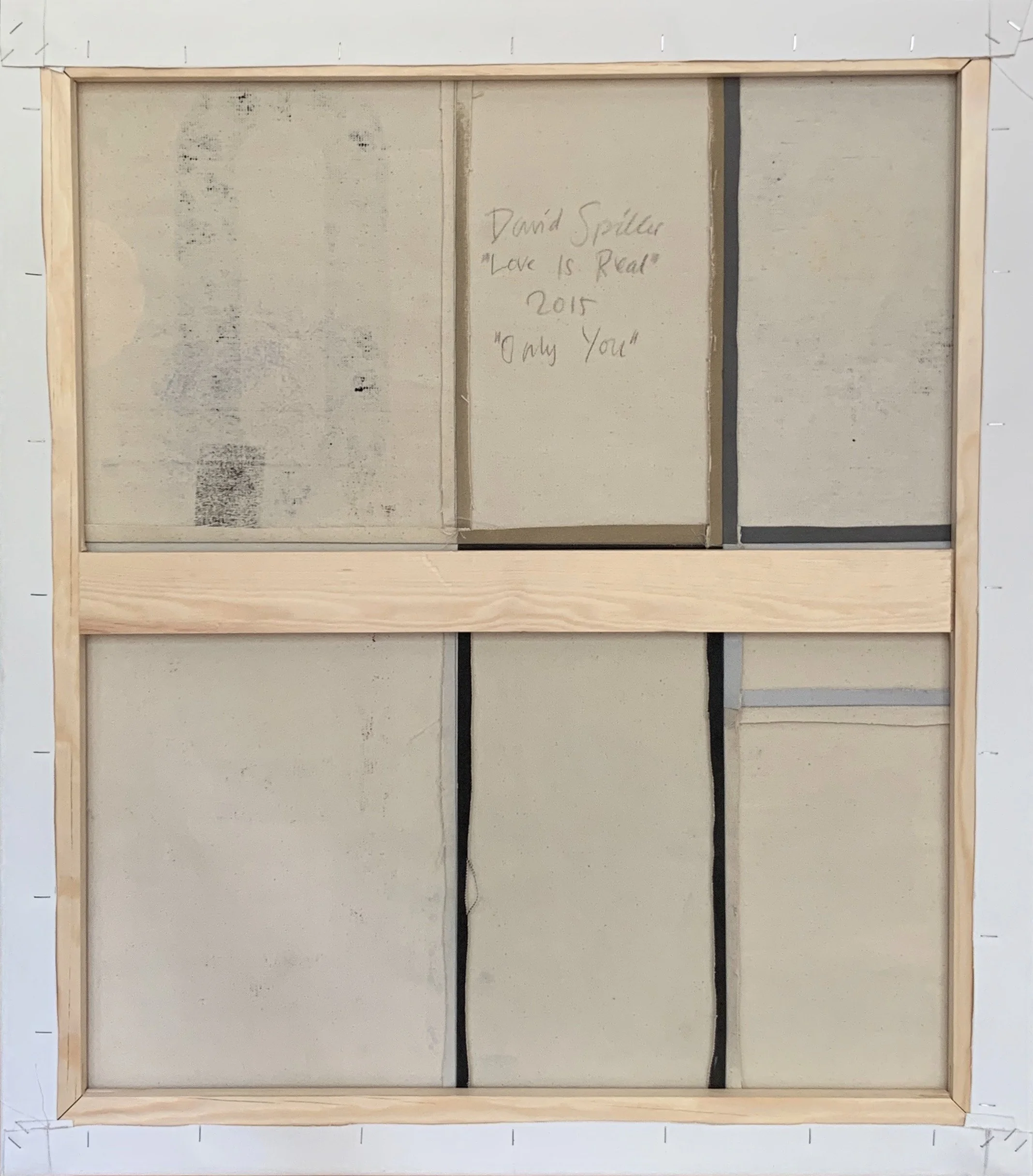 According to the artist’s estate: “Spiller laboriously assembled swatches of canvas, almost ‘neurosurgically’ sewing painted panels together, beautifully constructed, precise, hard-edge color abstract works that were painstakingly stenciled with lyrics from a favorite song. This unique way of assembling a painting (not obvious at first sight) gave him the freedom to remove or add panels, to obtain the ‘right’ balance. He loved the precision and possibilities this process offered, explaining that a line could not be painted so sharply; he took pride in their labor-of-love assembly, a magical process of what appears at first glance to be a seemingly effortless job.”