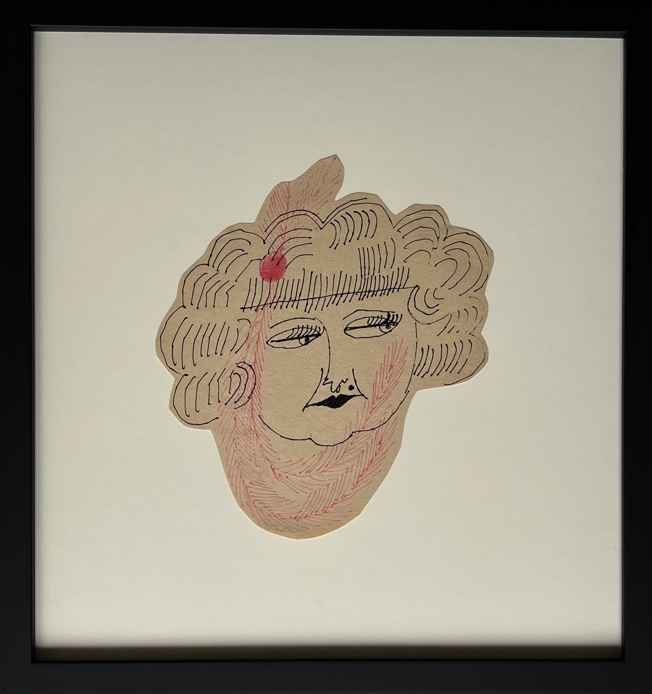 The cut-out portrait of British-born actress Hermione Gingold is one example of Warhol’s knowledge of and affinity for celebrities of his time. The Andy Warhol Foundation for the Visual Arts has dated this drawing circa 1954. Around this time, Ms. Gingold was performing on Broadway alongside Harry Belafonte in the musical John Murray Anderson’s Almanac. [1]